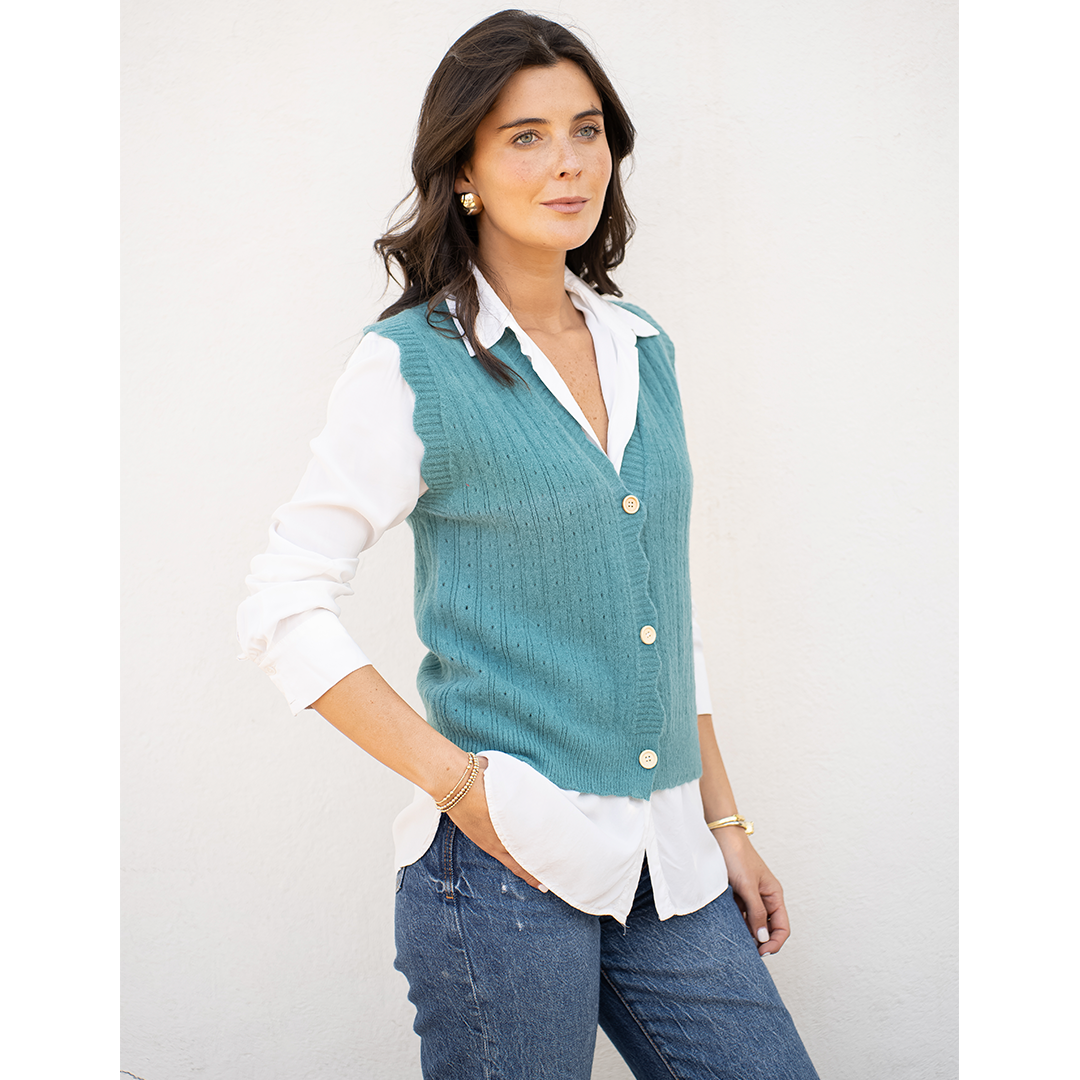 Tejido sin manga en colores preciosos.. ideal para usar sobre una camisa o sin nada en verano. Lavar a mano.