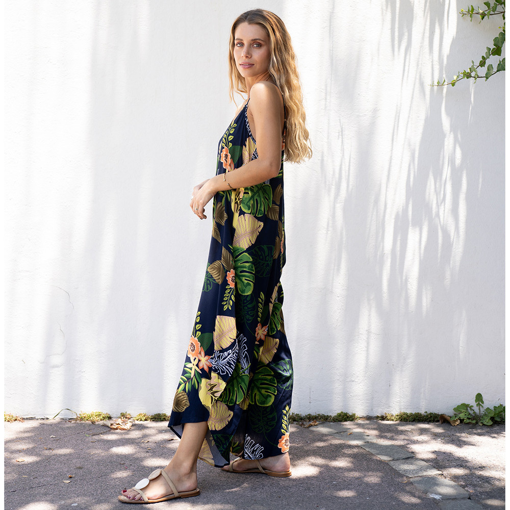 Enterito de viscosa estampada, con mucho movimiento. Es de tirita y tiene un corte irregular en la parte abajo. Es cómodo, no hay nada mejor que no tener que pensar en combinar! esa es la gracia es los enteritos. Encuentra sus medidas más abajo en características.