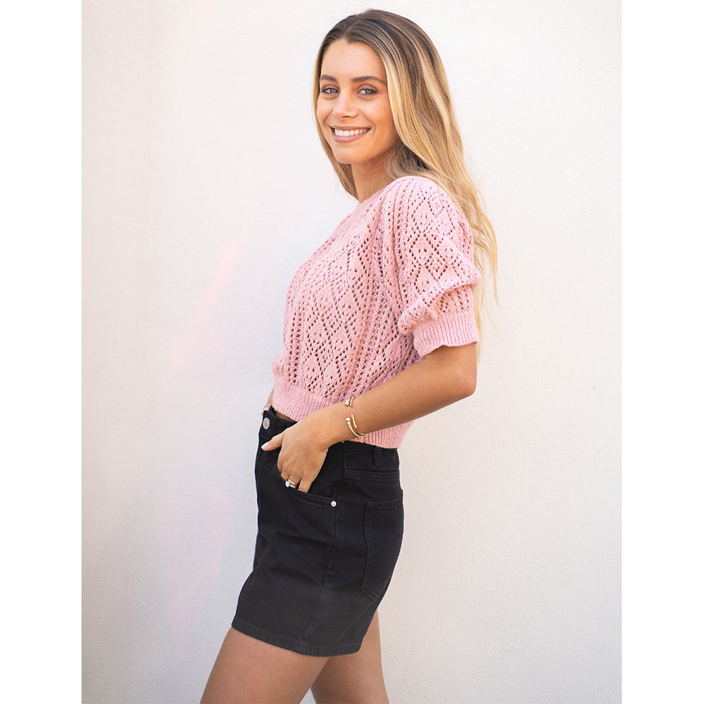 Polerita de hilo de manga corta y cuello redondo. Talla standar en negro, crudo y palo rosa. La modelo mide 1.60 y usa talla S. Lavar a mano y no usar secadora.
